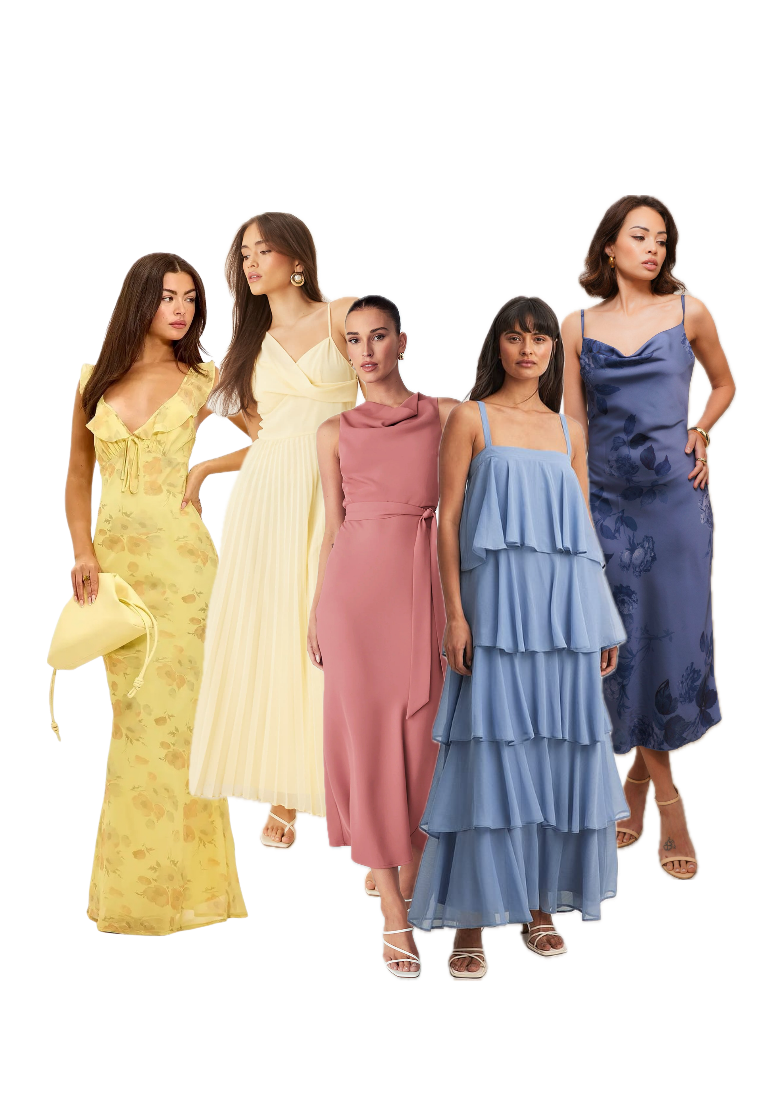Voor vrouwen past een midi/maxi jurk het beste bij de sfeer van onze dag. Strapless jurken of jurken met een open rug graag vermijden. Een subtiele (bloemen)print is welkom, mits het niet te opvallend is. We waarderen het enorm als je kiest voor één van onderstaande tinten: